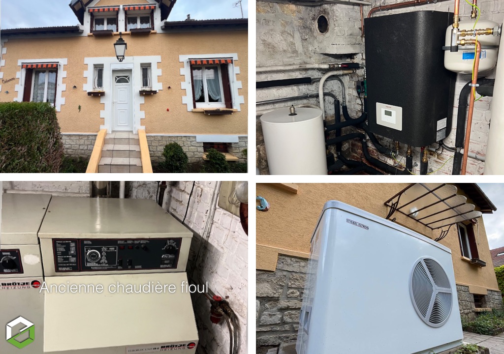 Dans ce pavillon ancien des années 50 situé à Vineuil Saint Firmin, près de Chantilly, le chauffage reposait sur une chaudière fioul de 25 kW.